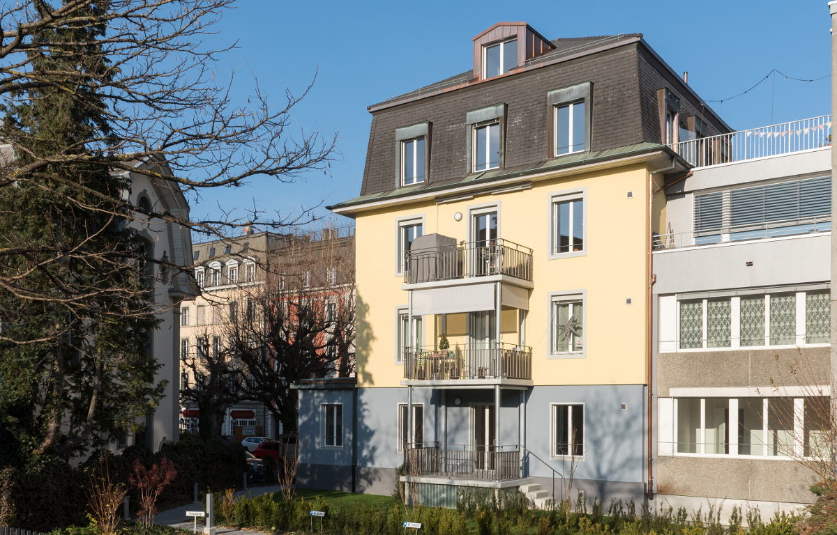 Eine lange Geschichte prägt das Gebäude: Errichtet im 19. Jahrhundert zweigeschossig als Bäckerei, aufgestockt 1910, in den Sechzigerjahren begradigt und gewerblich genutzt, ein Zwischenbau zum Nachbarn errichtet und schliesslich als Bürogebäde an die Uni vermietet.