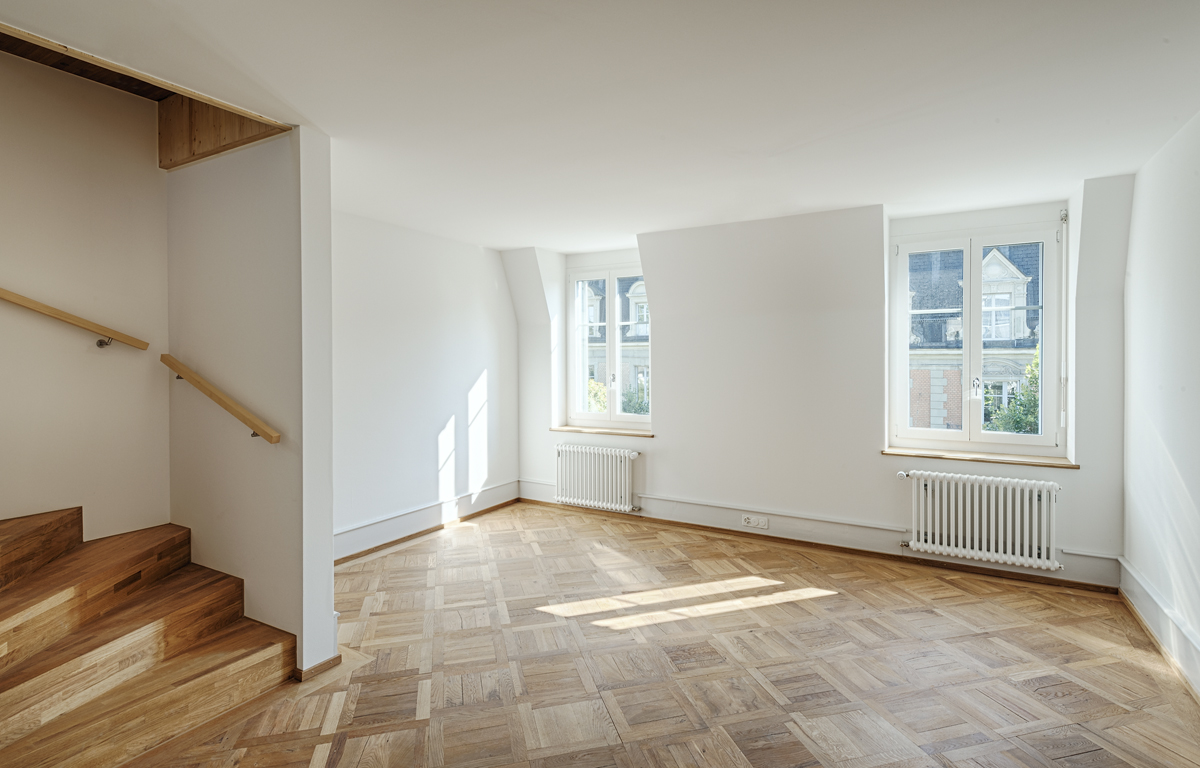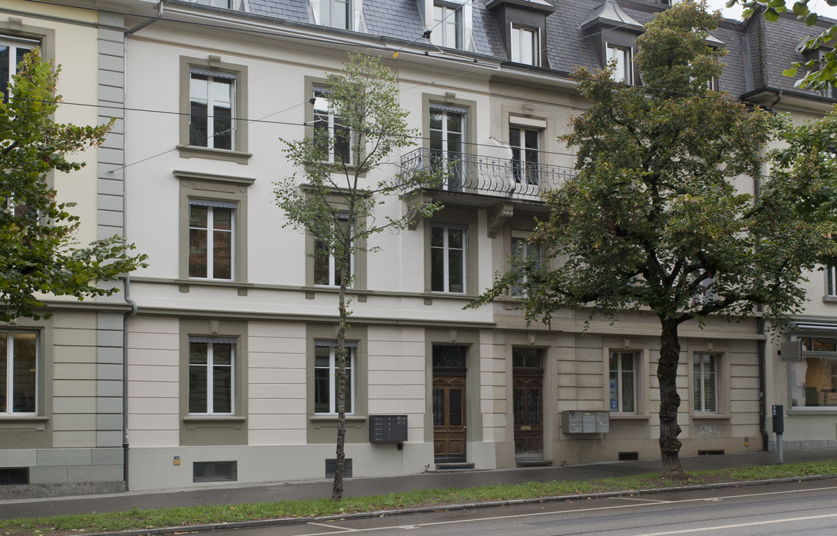 Denkmalgeschütztes Vierfamilienhaus im Kirchenfeld. Das Gebäude war in den hundert Jahren seines Bestehens noch kaum renoviert worden und in entsprechendem Zustand. Das leerstehende Gebäude wurde totalsaniert. Mit einem hofseitigen Anbau wurde die Erdgeschosswohnung vergrössert und im 1.OG eine Terrasse geschaffen.