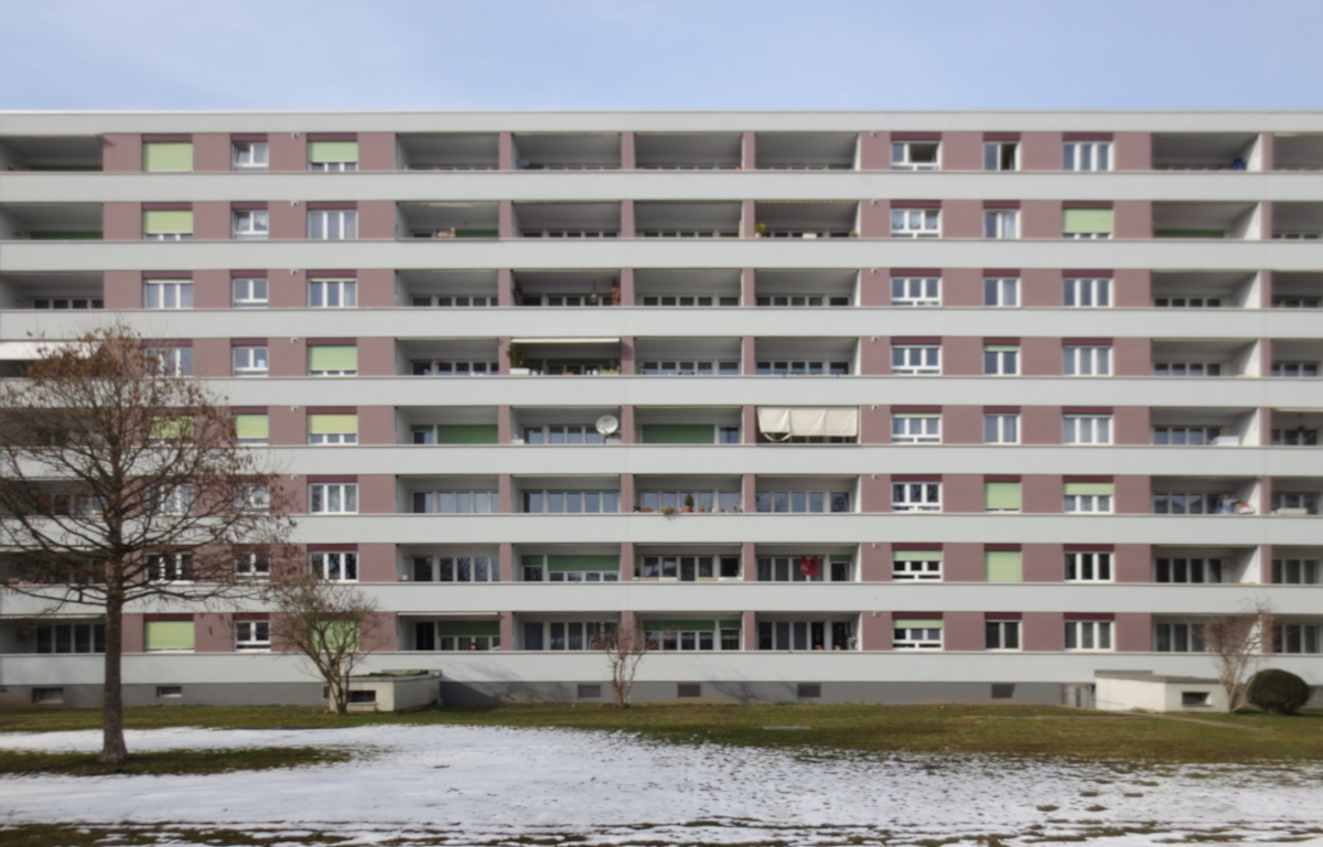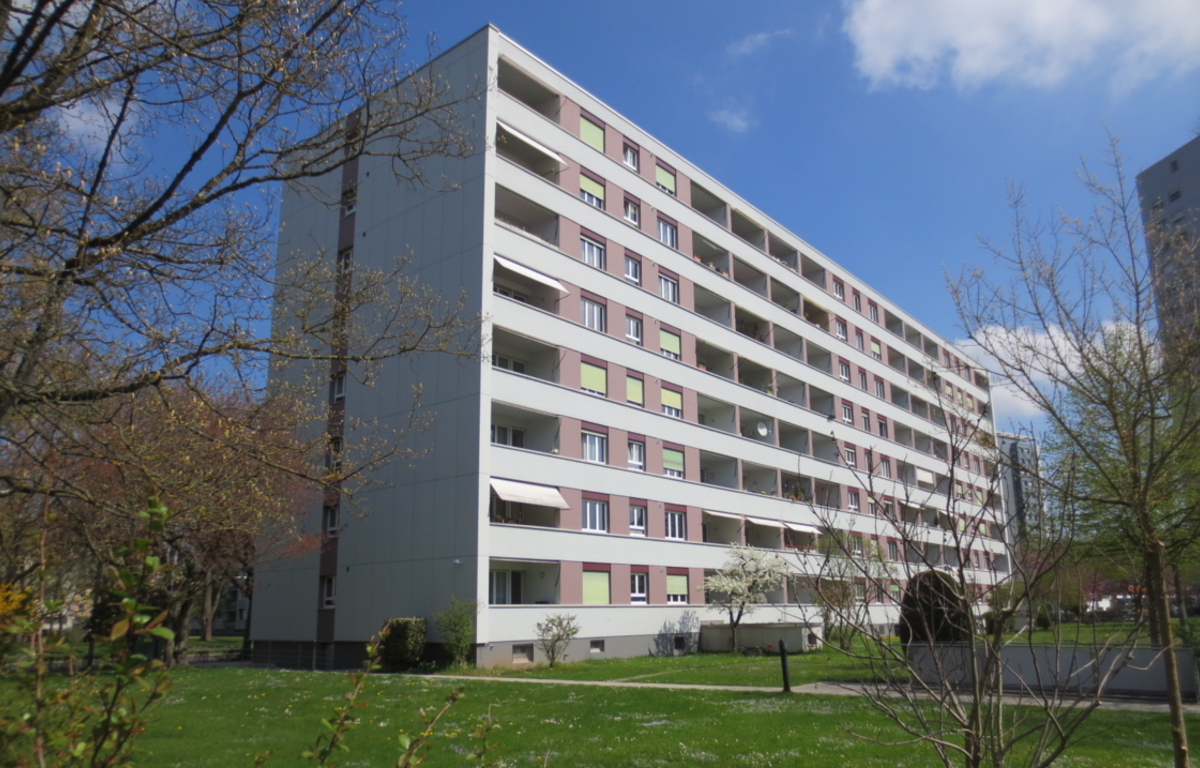 Der mächtige Wohnblock an der Ausfallstrasse war 1965 von unserem Büro zusammen mit Architekt De Maddalena errichtet worden, fast gleichzeitig mit dem benachbarten Wohnturm an der Winkelriedstrasse 7. Das Scheibenhaus atmet die geradlinigen Gestaltungsprinzipien der 1960er Jahre. 2017 wurden die gesamten Elektroanlagen und das Flachdach ersetzt.